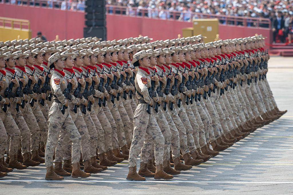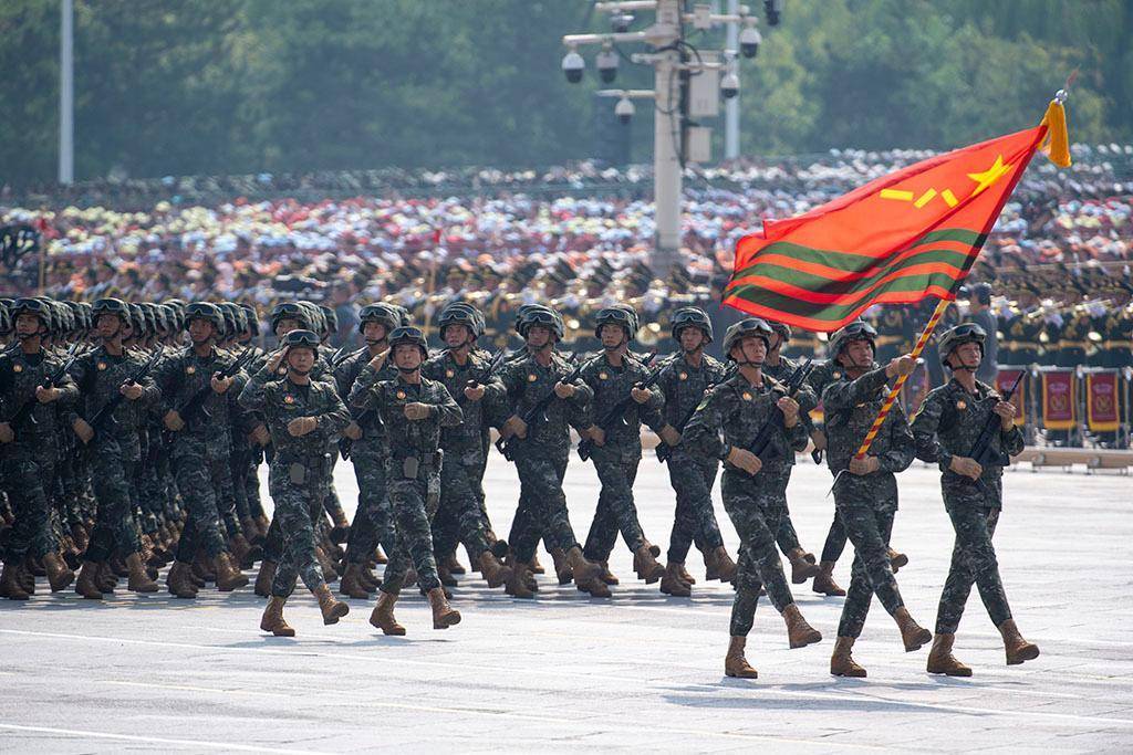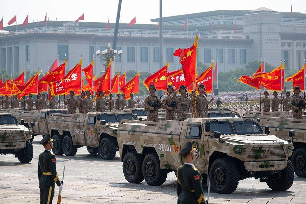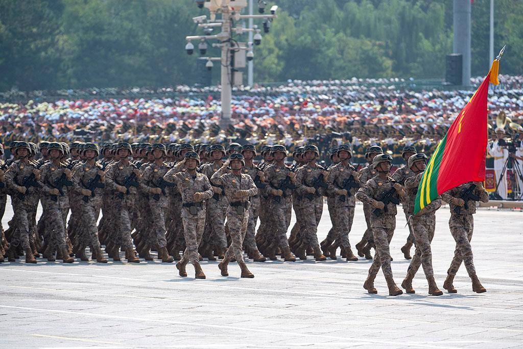 9月3日,纪念中国人民抗日战争暨世界反法西斯战争胜利80周年大会在北京隆重举行。图为中国人民解放军仪仗方队接受检阅。