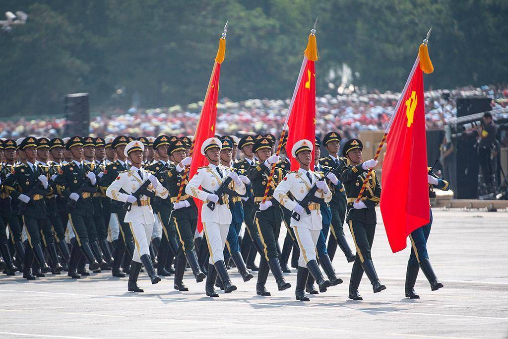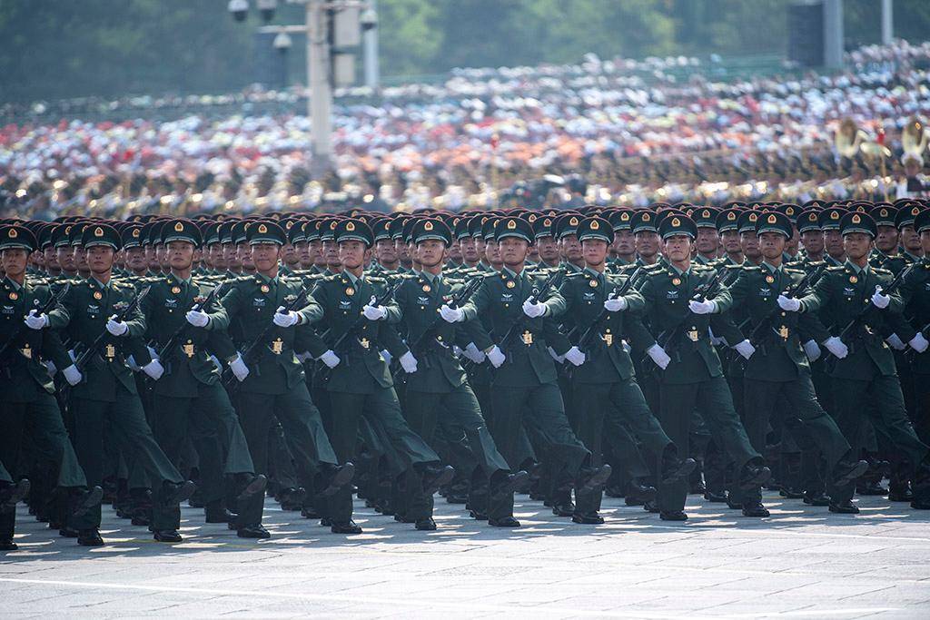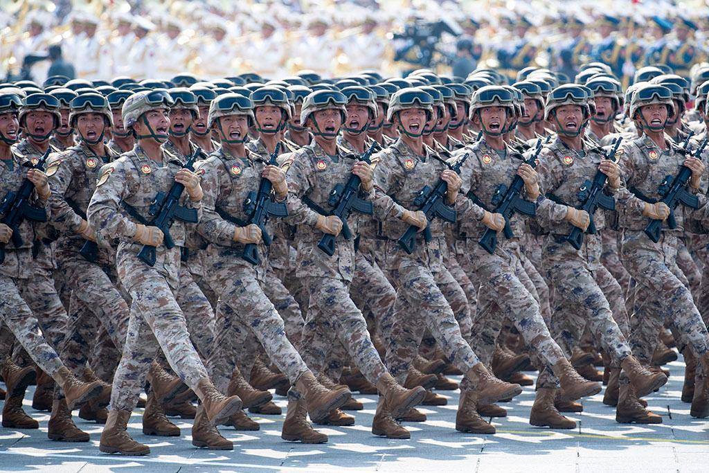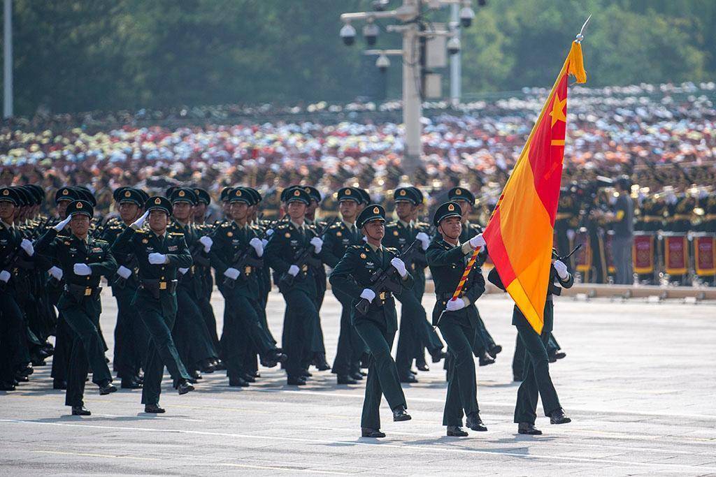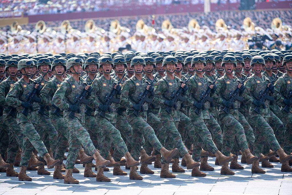 9月3日,纪念中国人民抗日战争暨世界反法西斯战争胜利80周年大会在北京隆重举行。图为中国人民解放军仪仗方队接受检阅。