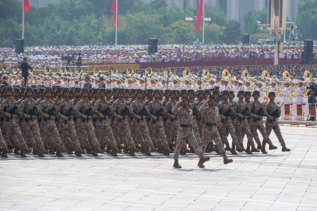 9月3日,纪念中国人民抗日战争暨世界反法西斯战争胜利80周年大会在北京隆重举行。图为陆军方队接受检阅。