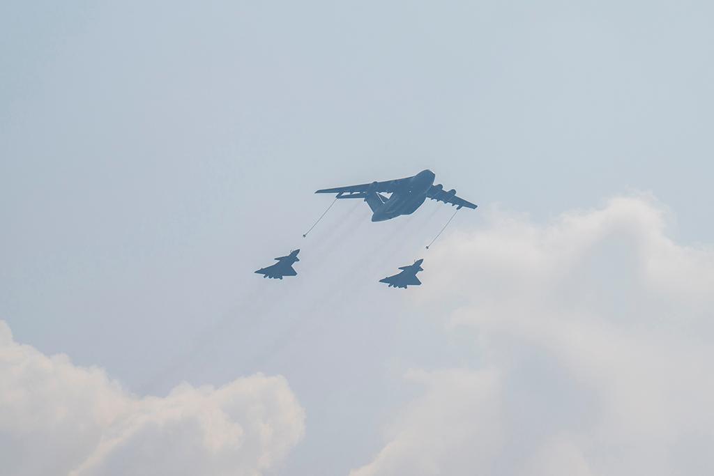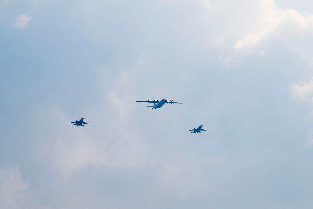 9月3日,纪念中国人民抗日战争暨世界反法西斯战争胜利80周年大会在北京隆重举行。图为加受油机梯队接受检阅。