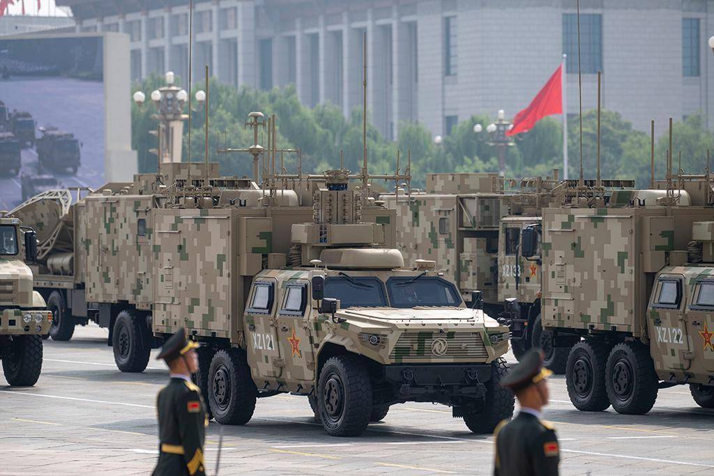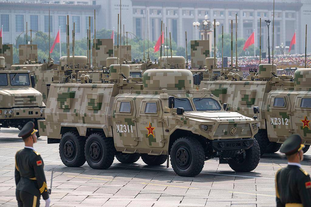9月3日,纪念中国人民抗日战争暨世界反法西斯战争胜利80周年大会在北京隆重举行。图为电子对抗方队接受检阅。