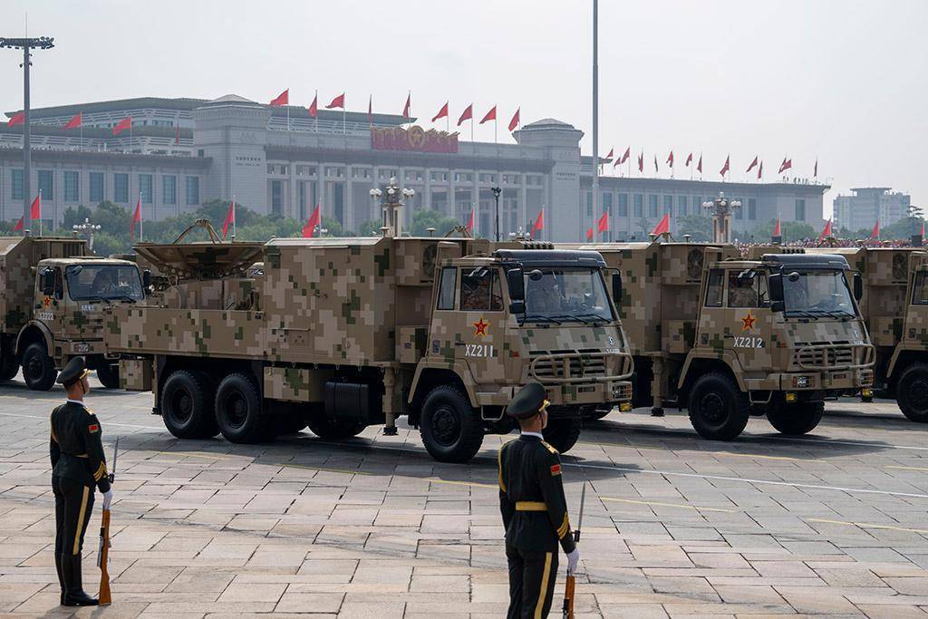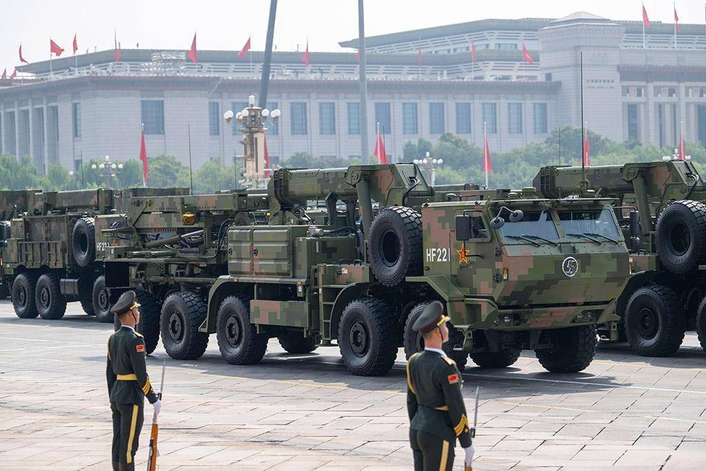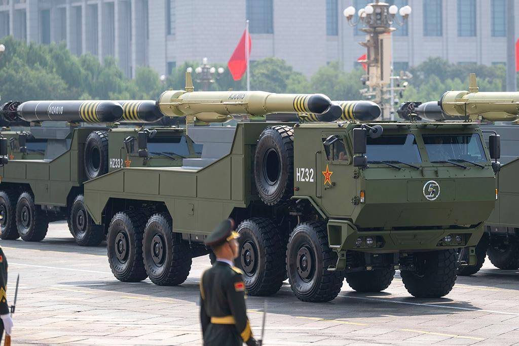 9月3日,纪念中国人民抗日战争暨世界反法西斯战争胜利80周年大会在北京隆重举行。图为高超声速导弹方队接受检阅。