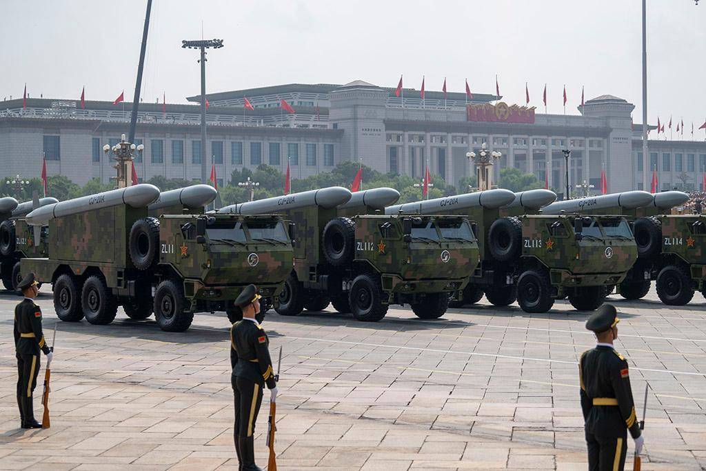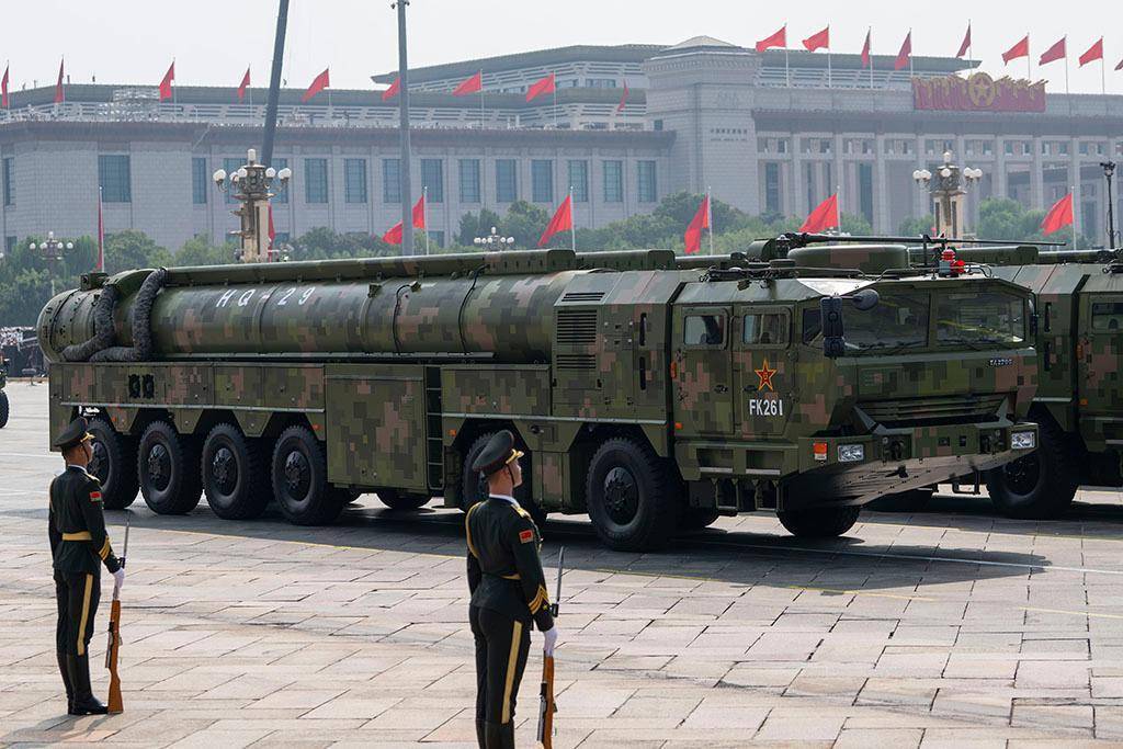 9月3日,纪念中国人民抗日战争暨世界反法西斯战争胜利80周年大会在北京隆重举行。图为核导弹第一方队接受检阅。
