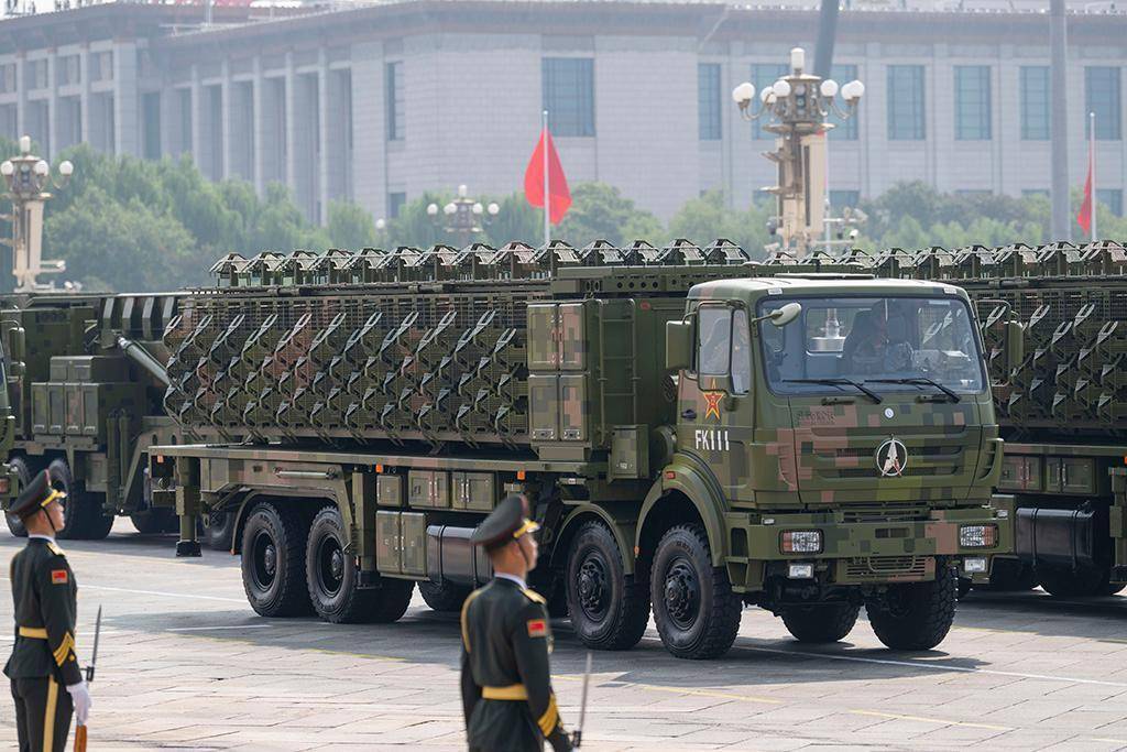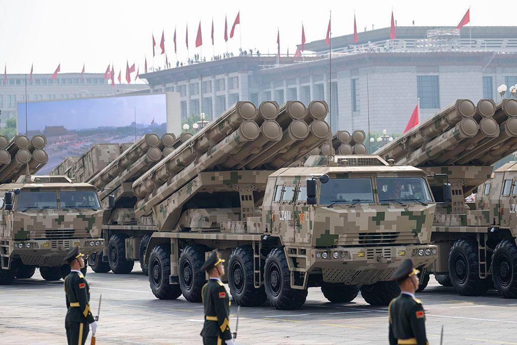 9月3日,纪念中国人民抗日战争暨世界反法西斯战争胜利80周年大会在北京隆重举行。图为远程火炮方队接受检阅。