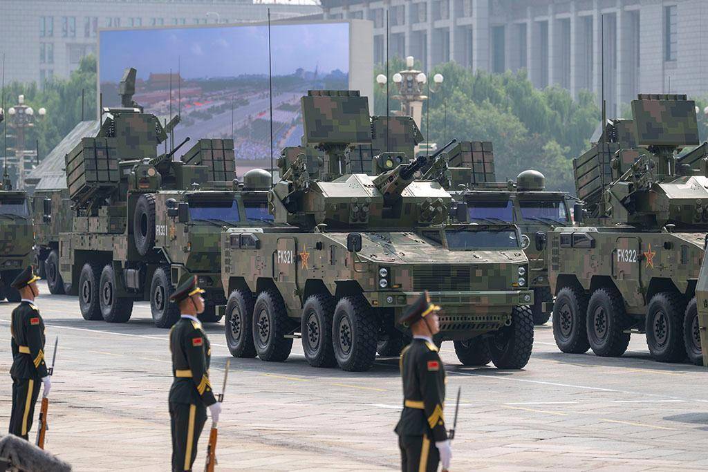 9月3日,纪念中国人民抗日战争暨世界反法西斯战争胜利80周年大会在北京隆重举行。图为舰载防空武器方队接受检阅。