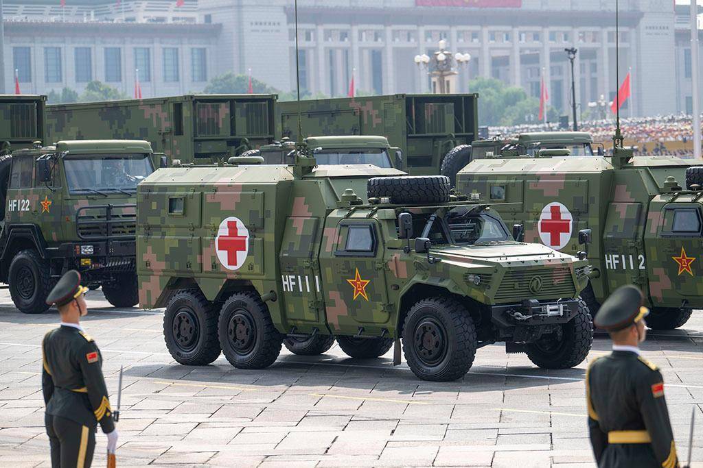 9月3日,纪念中国人民抗日战争暨世界反法西斯战争胜利80周年大会在北京隆重举行。图为装备保障方队接受检阅。