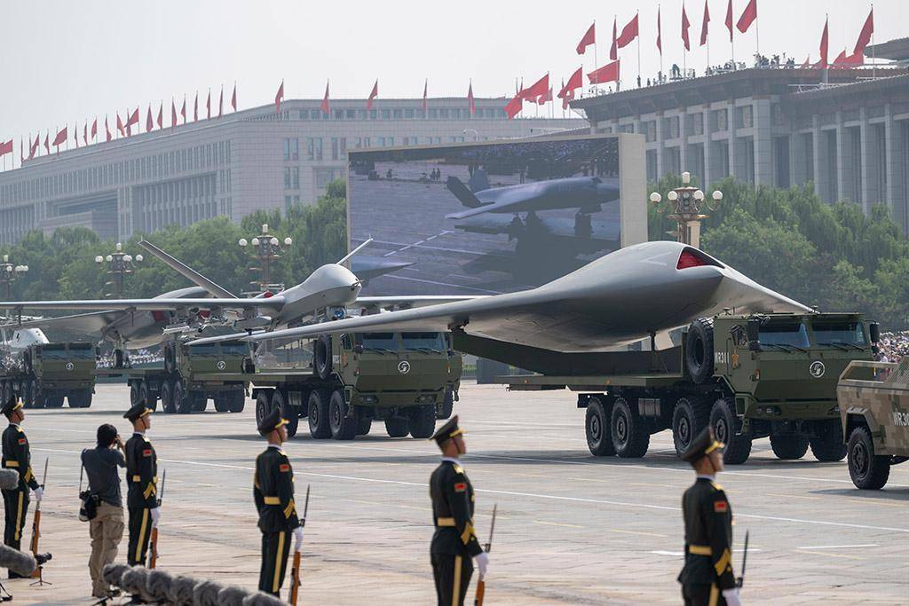 9月3日,纪念中国人民抗日战争暨世界反法西斯战争胜利80周年大会在北京隆重举行。图为空中无人作战方队接受检阅。