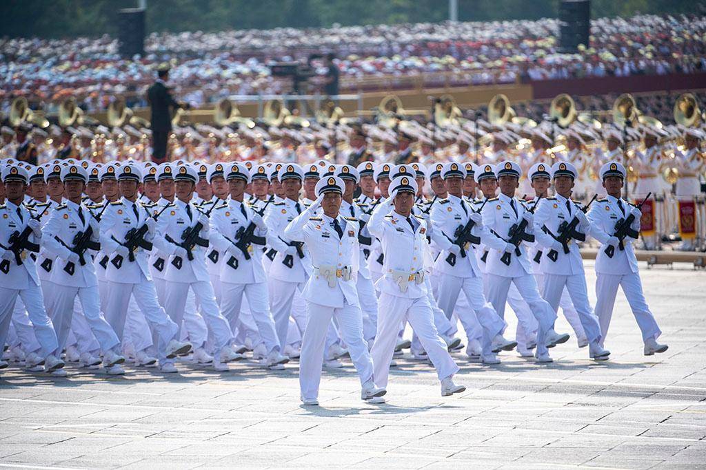 9月3日,纪念中国人民抗日战争暨世界反法西斯战争胜利80周年大会在北京隆重举行。图为海军方队接受检阅。