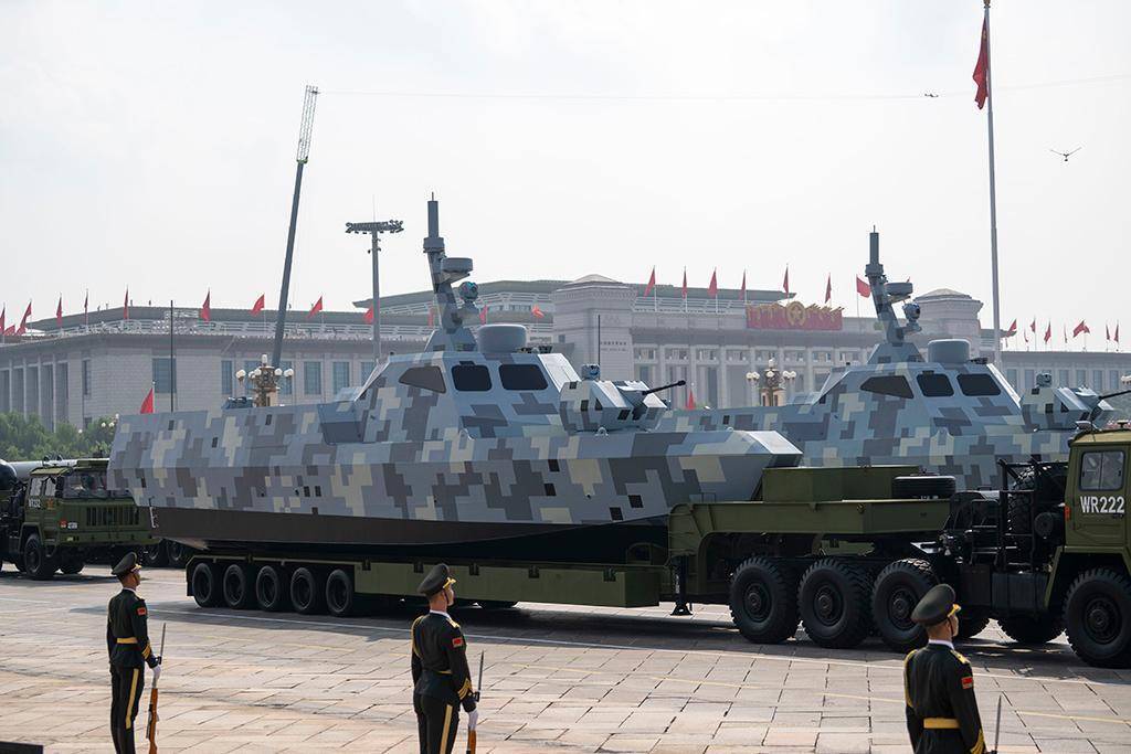 9月3日,纪念中国人民抗日战争暨世界反法西斯战争胜利80周年大会在北京隆重举行。图为海上无人作战方队接受检阅。