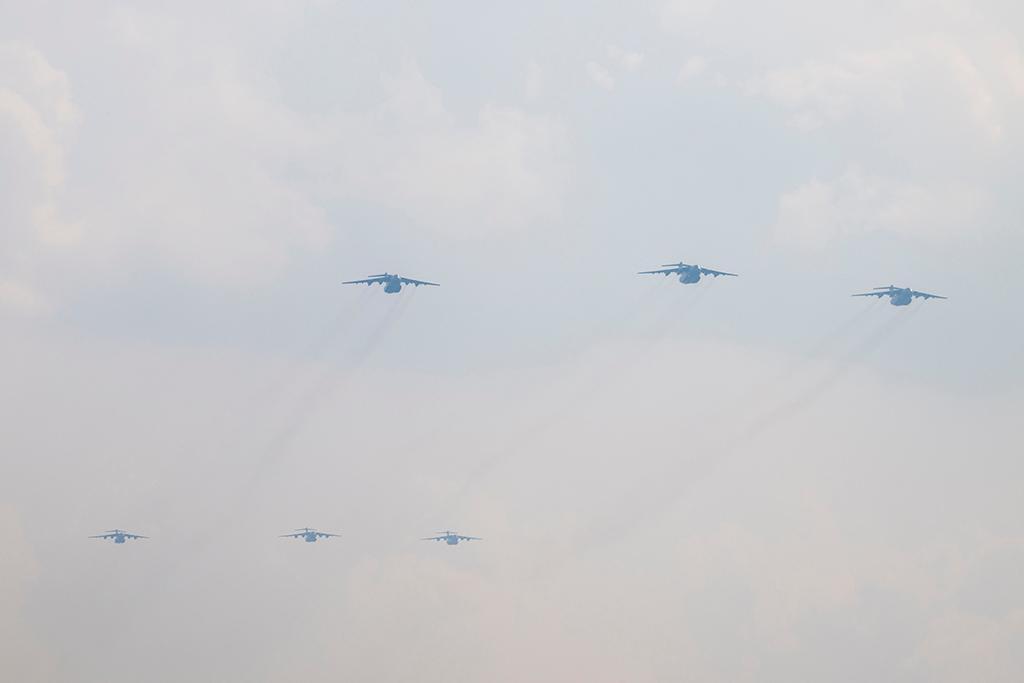 9月3日,纪念中国人民抗日战争暨世界反法西斯战争胜利80周年大会在北京隆重举行。图为运输机梯队接受检阅。