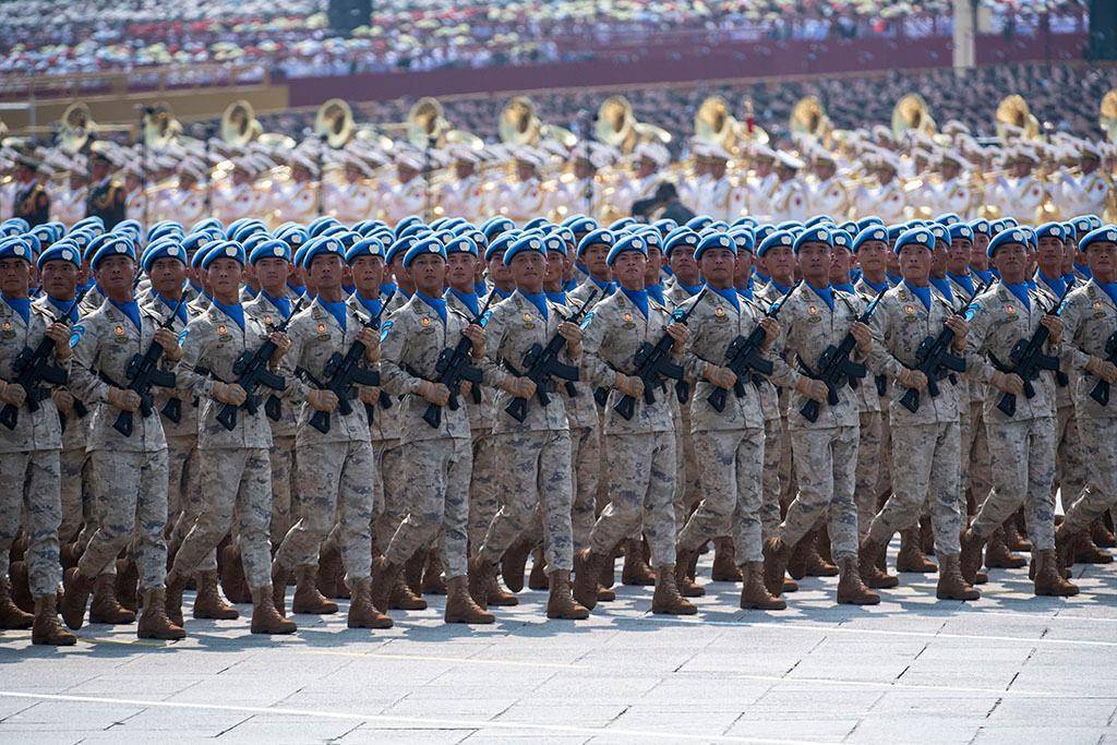 9月3日,纪念中国人民抗日战争暨世界反法西斯战争胜利80周年大会在北京隆重举行。图为维和部队方队接受检阅。