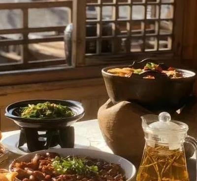 百花家宴是当地特色。技艺有上百年历史。用山区农产品做菜。粗粮细做,成山里菜。火盆豆腐简单好吃。羊倌黄豆炖家鸡,营养足。炕发绿豆芽山羊肉,暖胃。杂货菜烩豆腐,家常味。