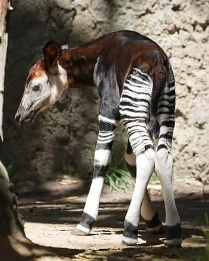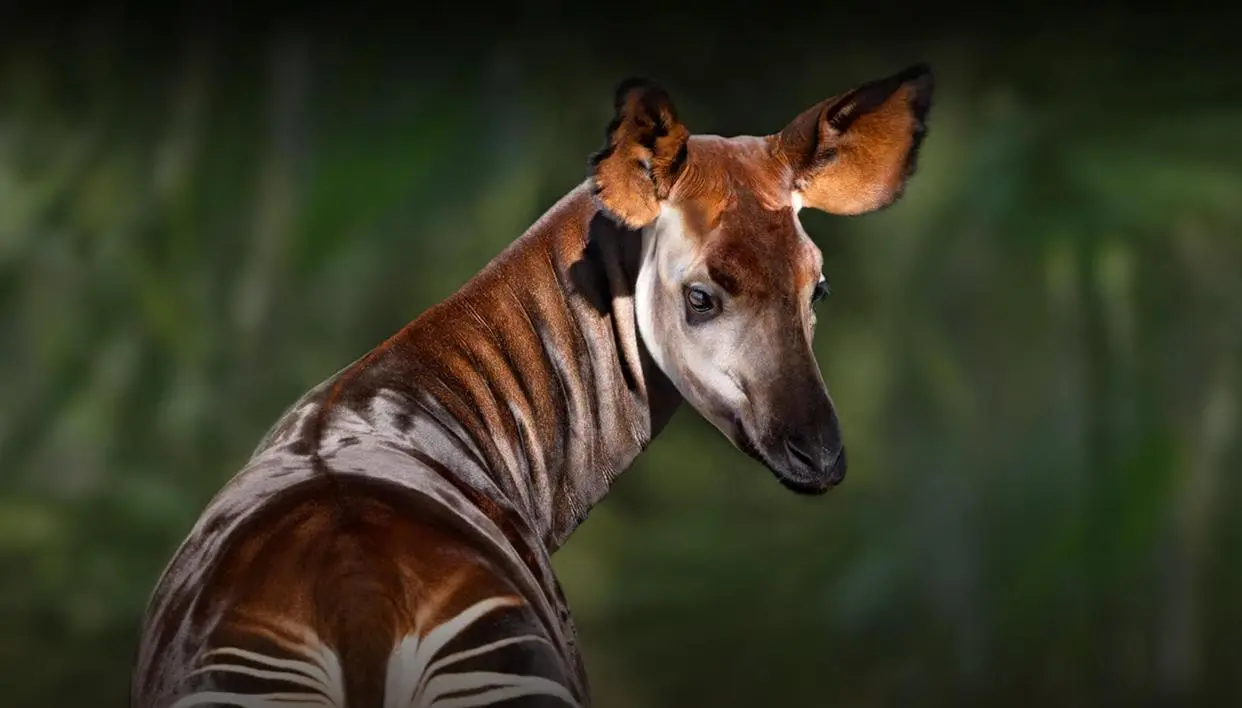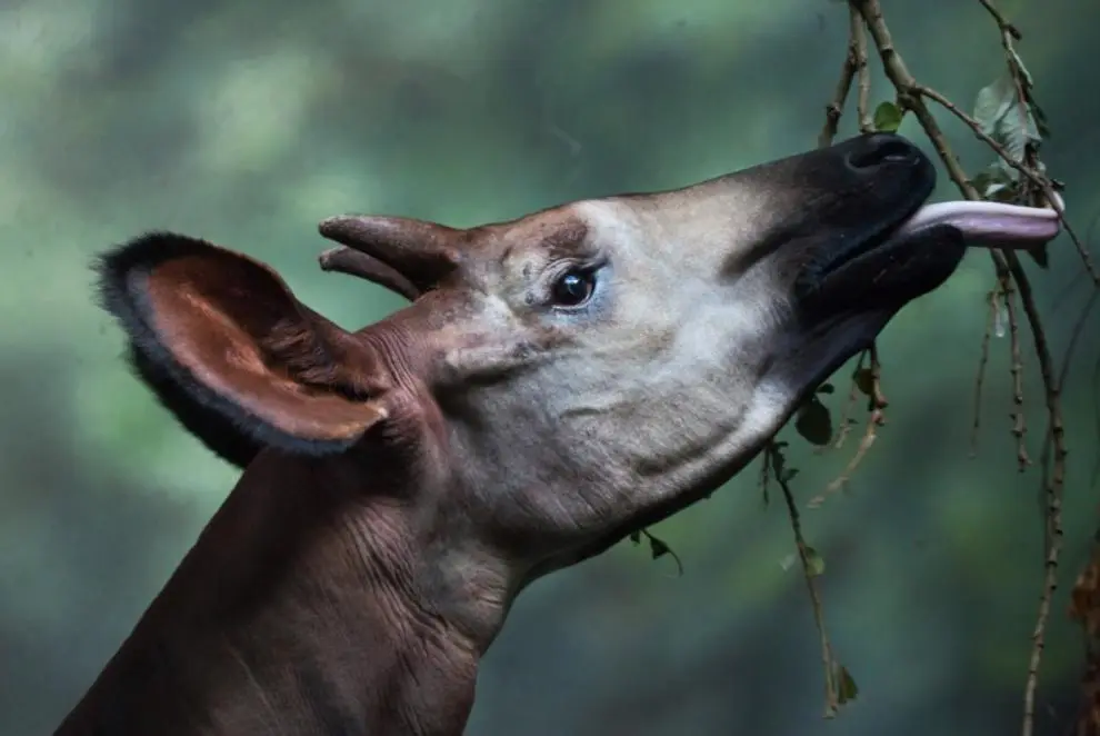 它是长颈鹿唯一的现存近亲,跟斑马是完全没有关系的,它就是霍加狓(Okapia johnstoni)。